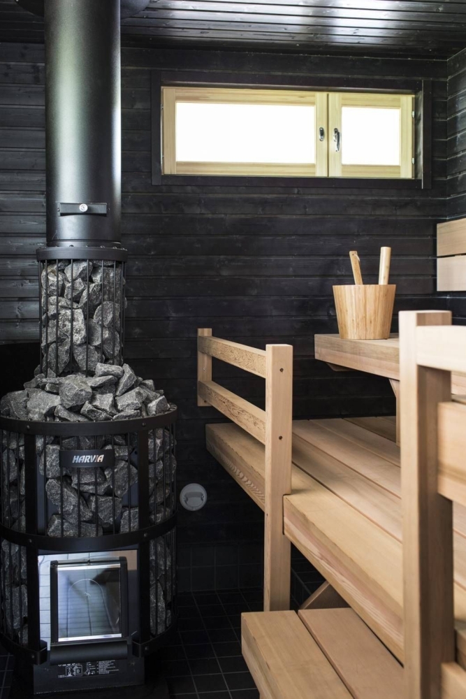 Отличается высокой температурой и низкой влажностью. Температура в сауне может достигать 100-110 градусов Цельсия, а влажность составляет всего 10-15%. В финской сауне также используются раскаленные камни, но количество воды, которое попадает на камни, минимально, что позволяет сохранять низкую влажность. Высокая температура способствует интенсивному потоотделению и расслаблению мышц. После посещения сауны принято обливаться холодной водой или окунаться в бассейн для закаливания организма.