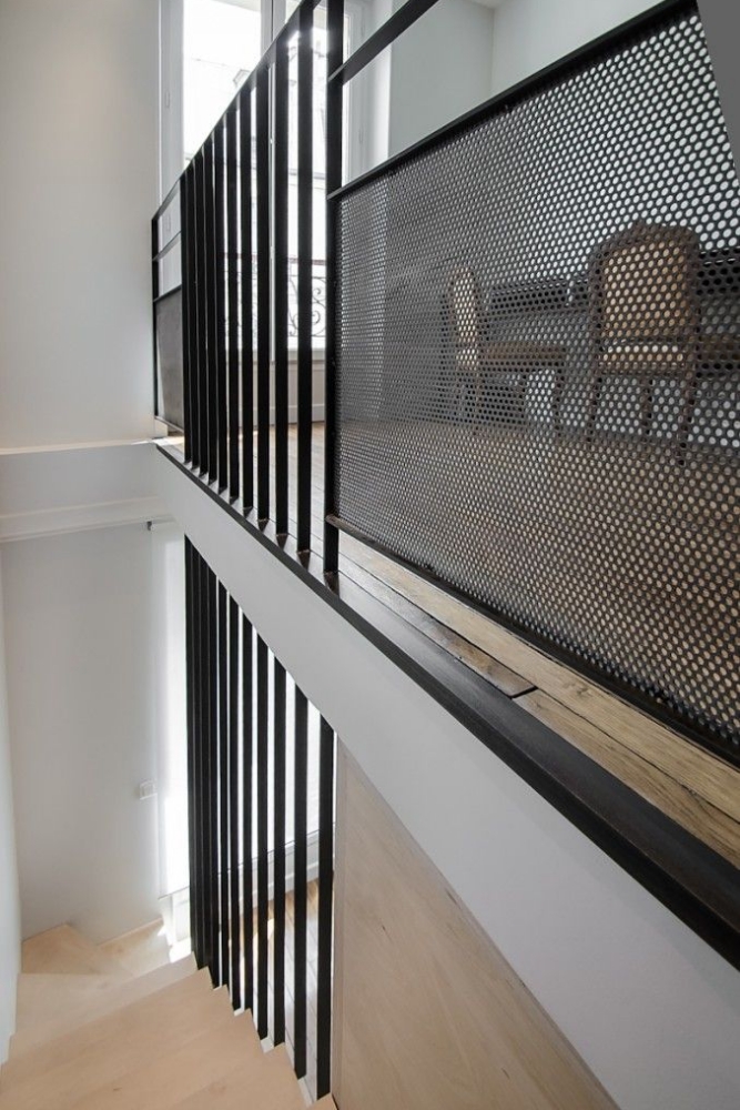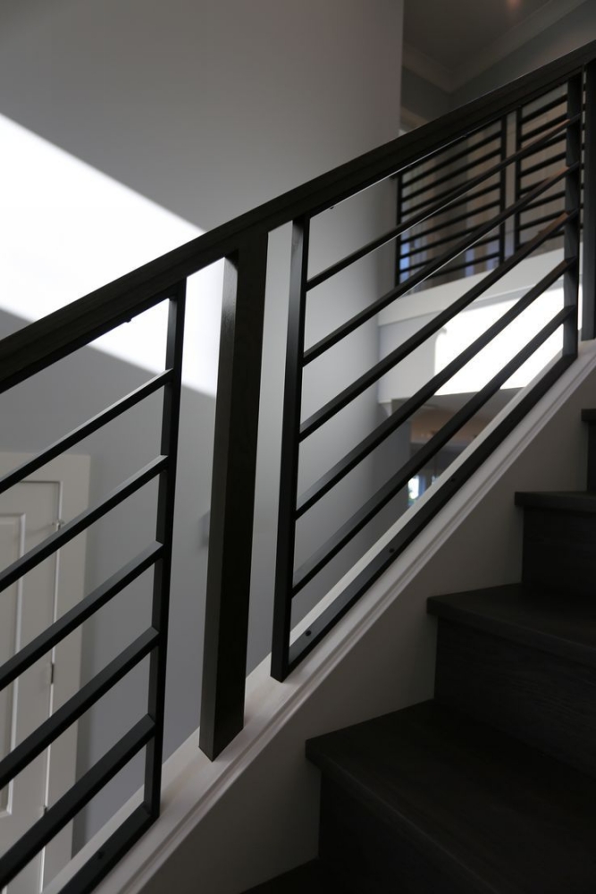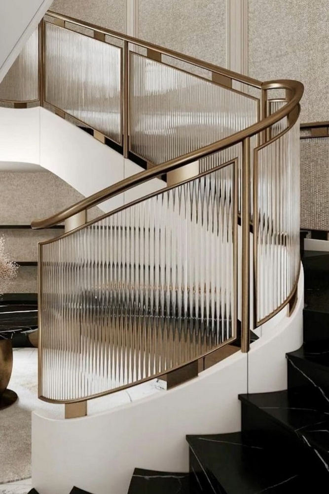 Металлические ограждения считаются одними из самых надёжных. Сталь, алюминий или кованое железо выдерживают большие нагрузки и служат десятилетиями. В интерьерах в стиле лофт и минимализм популярны прямые стальные конструкции в чёрном или графитовом цвете, а в классике — художественная ковка с узорами. Металл не боится влаги и перепадов температур, но его поверхность может быть холодной на ощупь. Поэтому часто металл сочетают с деревом для поручней.