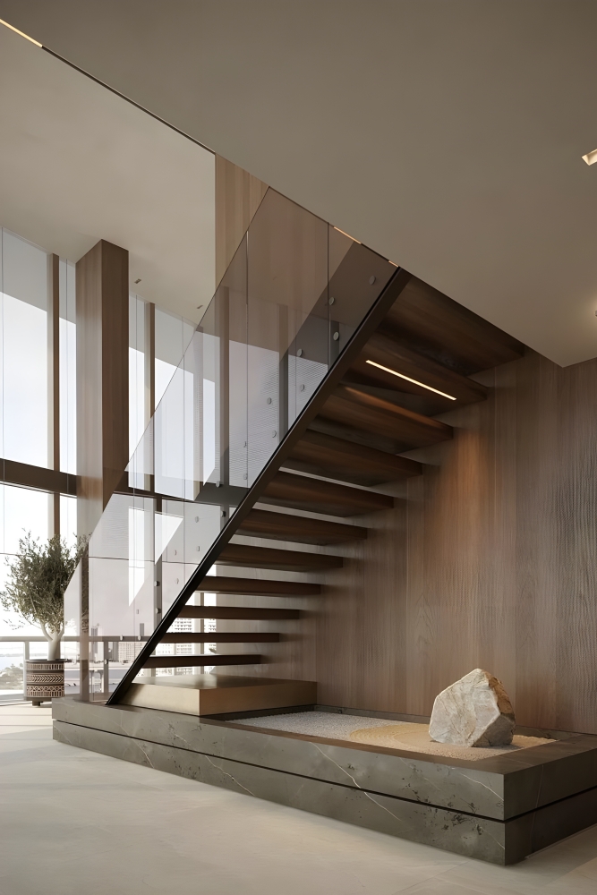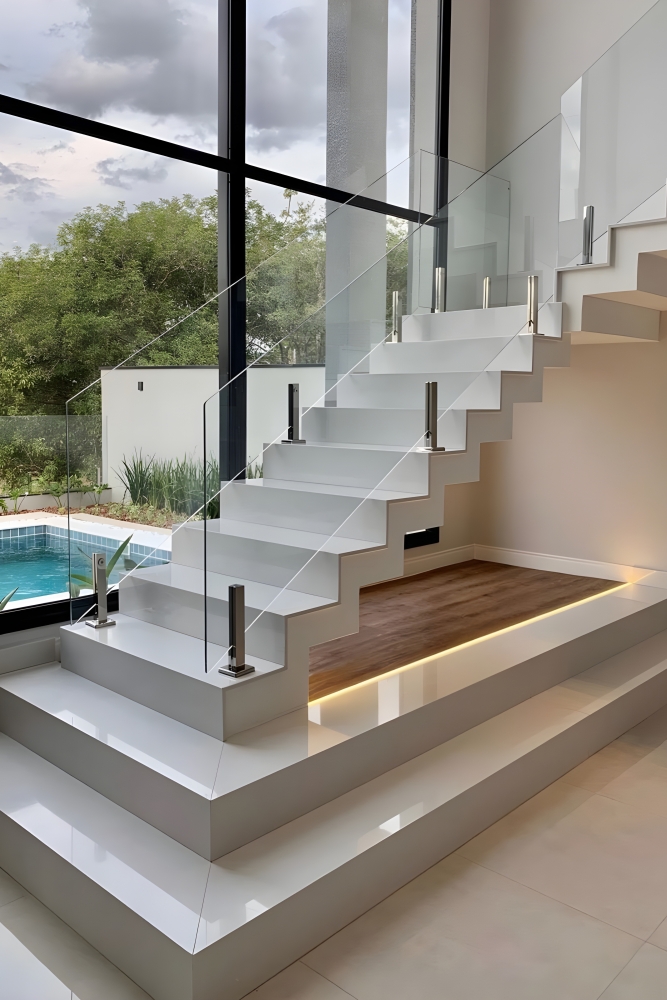 Не менее важна и эстетика: ограждение задаёт ритм и пропорции лестницы, подчёркивает стиль интерьера и может стать ключевым акцентом пространства. А правильно выбранный материал гарантирует долговечность и лёгкость ухода.