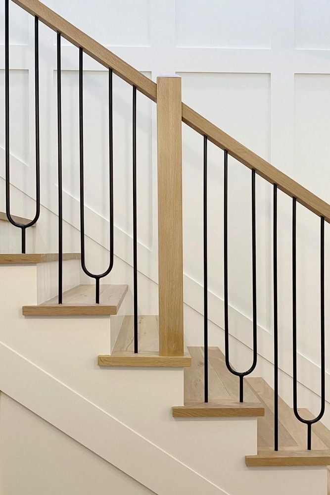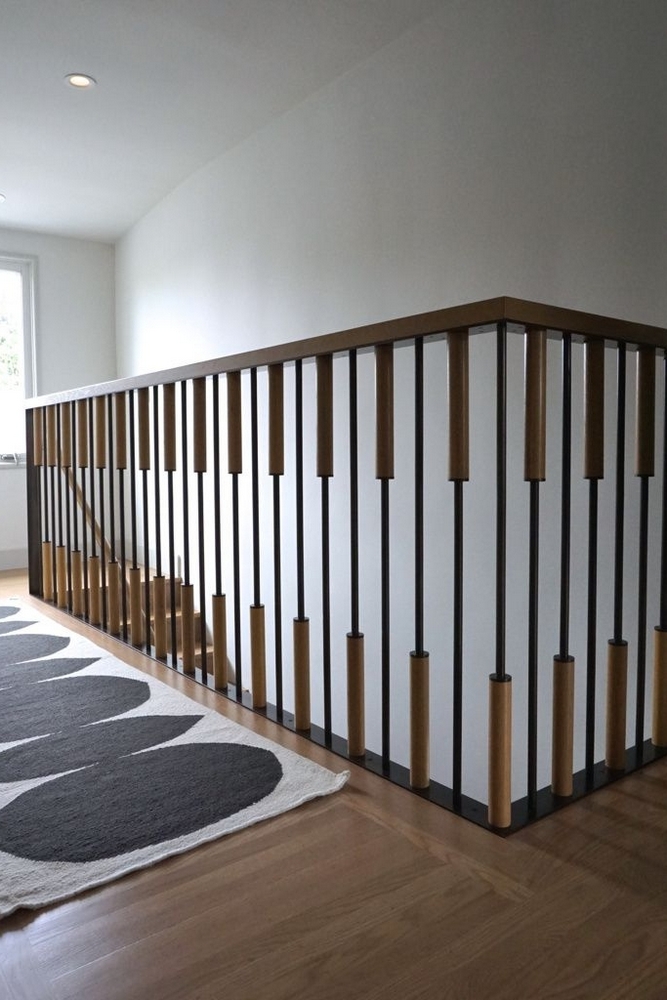 Деревянные ограждения ценят за естественность и уют. Массив дуба, бука или ясеня долговечен, а сосна или ель позволяют снизить бюджет. Дерево легко поддаётся тонировке и обработке, что даёт свободу в подборе оттенков под интерьер. В классических интерьерах часто используют фигурные балясины и резьбу, а в современных — прямые минималистичные формы. Минусом может стать чувствительность к влаге и необходимость регулярного ухода — покрытия маслом или лаком.