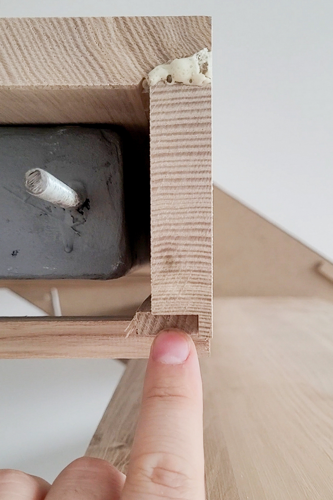 - Подготовка ступеней под светодиодную подсветку – в массиве ясеня профрезеровали пазы, в которые аккуратно смонтировали ленты.