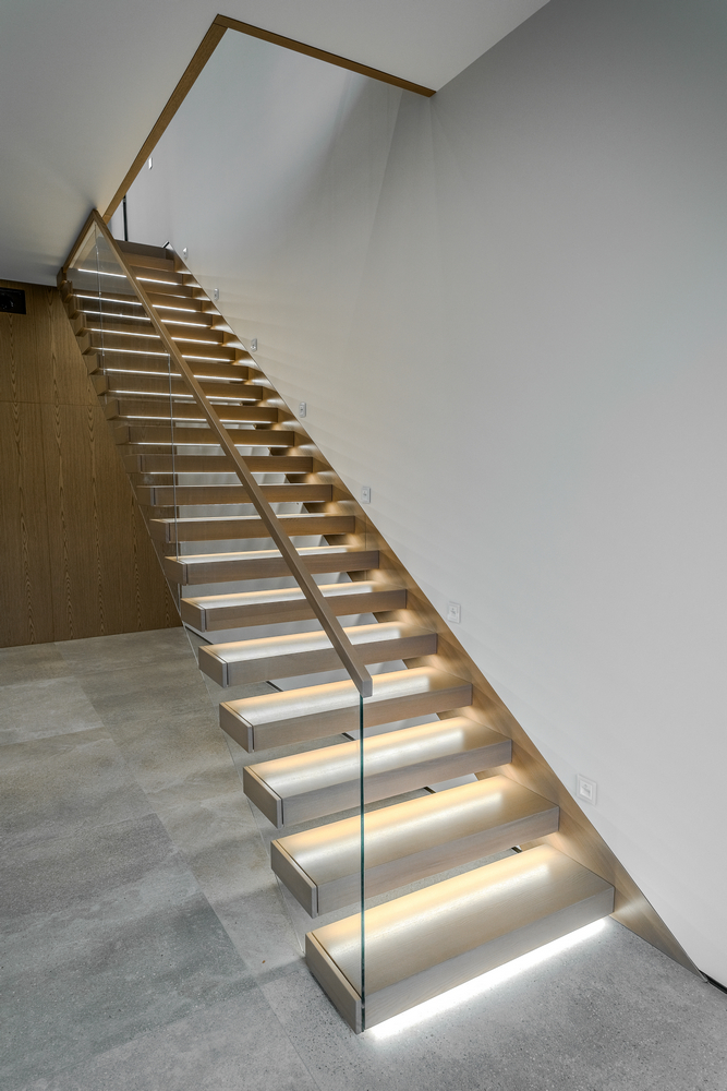 - Безопасность – освещенные ступени делают передвижение более комфортным, особенно ночью.