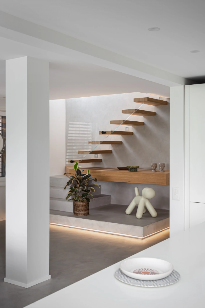 Консольная лестница — это одна из самых сложных и технологичных конструкций в современном интерьере. Её особенность заключается в том, что ступени крепятся только с одной стороны, обычно к несущей стене или скрытому металлическому каркасу. В результате создаётся визуальный эффект парящих ступеней, который придаёт интерьеру ощущение лёгкости и архитектурной утончённости.