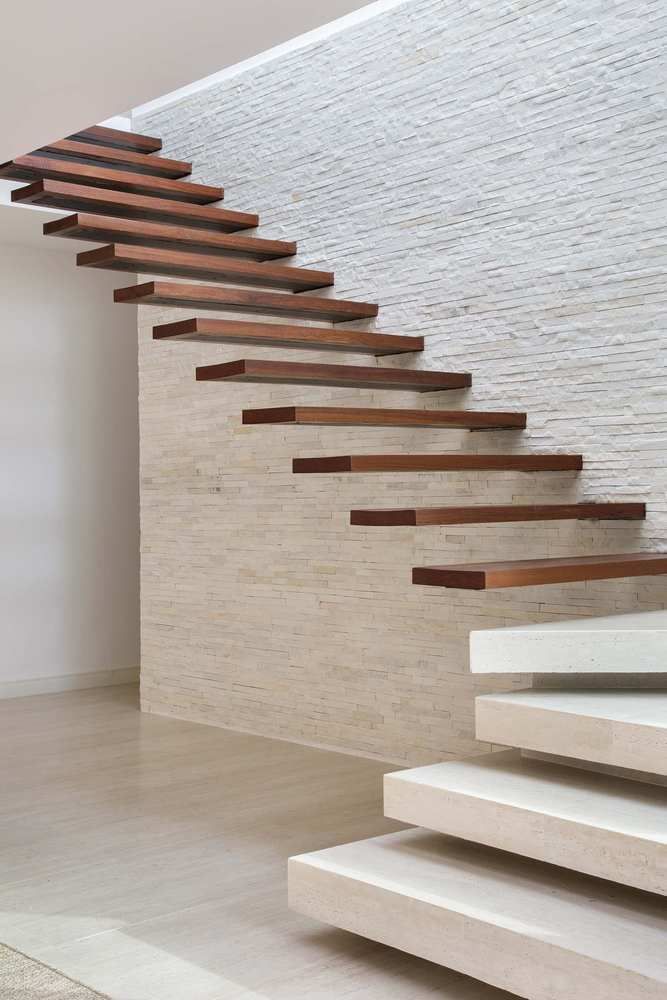 Консольные лестницы, также известные как «воздушные лестницы» или «ступени из стены», завоевали популярность благодаря своему уникальному дизайну и впечатляющему визуальному эффекту. Эти лестницы создают иллюзию парящих в воздухе ступеней, что придает интерьеру легкость и современность. Крепление ступеней только с одной стороны делает их незаметными и создает ощущение простора.