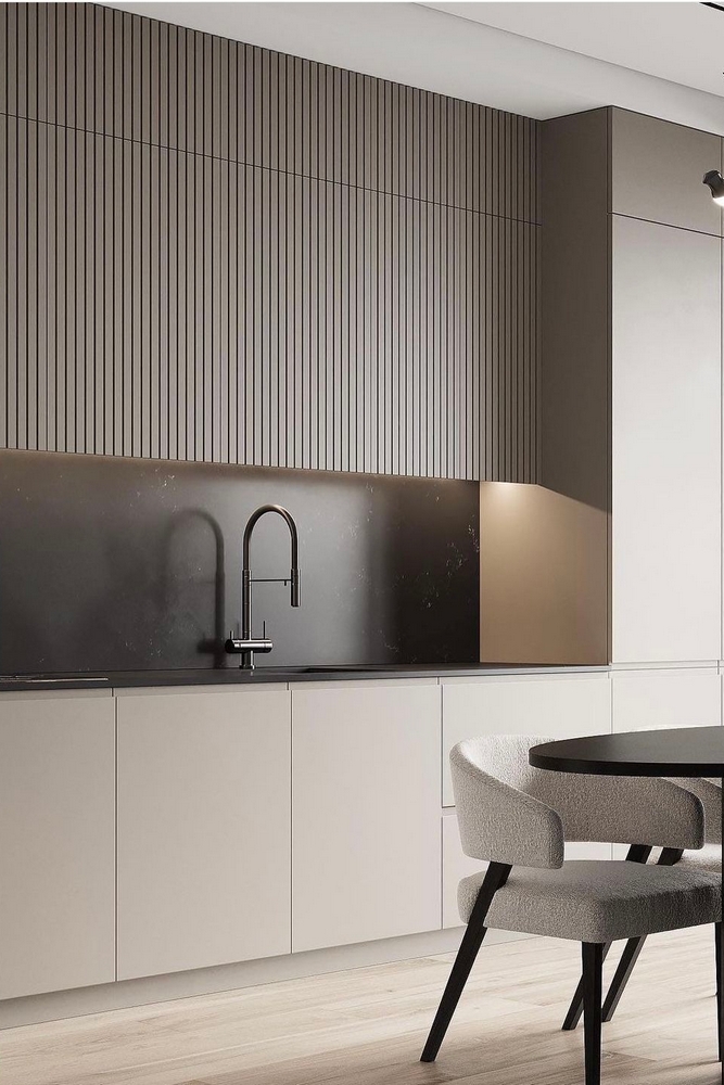 Шкафы и полки также должны быть расположены на удобной высоте. Верхние шкафы обычно устанавливаются на высоте 50-60 см над столешницей, чтобы до них было легко дотянуться, не прибегая к использованию стремянки или табурета.