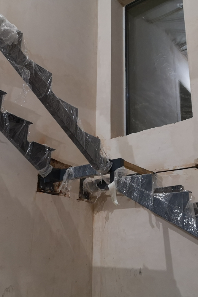 Все детали металлического каркаса лестницы изготавливаются с помощью профессионального оборудования в производственном цеху мастерской. Осуществляется полная сборка и подгонка всей конструкции лестницы в соответствии с утвержденной технической документацией. После чего производится покраска, упаковка и подготовка металлокаркаса лестницы для доставки на объект.