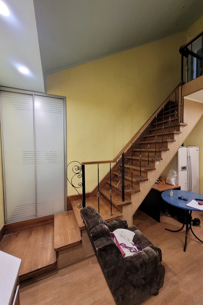 Каждый проект начинается с задачи. В этом случае заказчики обратились к нам с, казалось бы, невозможным запросом — встроить лестницу и кухню в одно небольшое помещение. Пространство было ограничено, но при этом должно оставаться функциональным и эстетичным.
