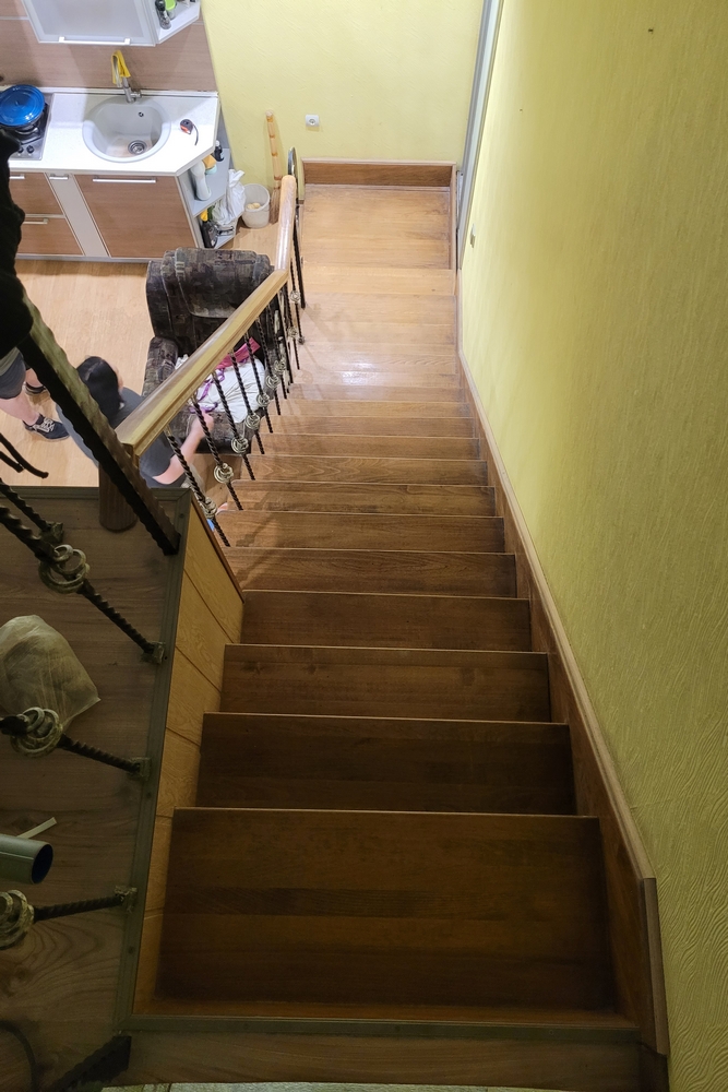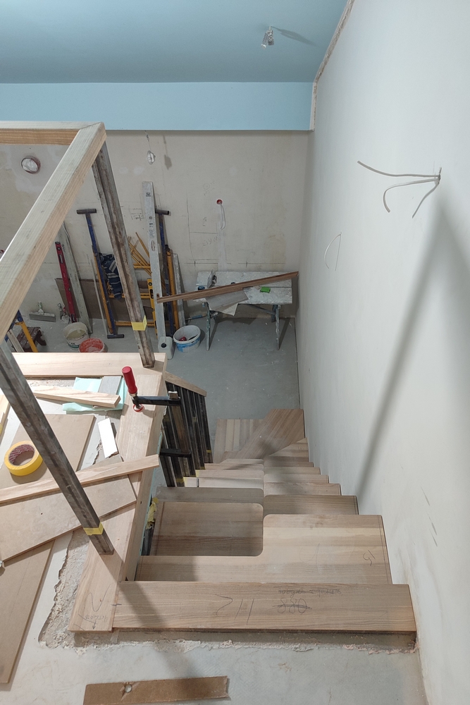 Первым этапом стал замер и анализ планировки. Мы внимательно изучили габариты помещения, расположение будущей кухни и возможные направления подъёма. Уже на этом этапе стало ясно: традиционная маршевaя конструкция займёт слишком много места. Решение оказалось нестандартным, но точным — лестница типа «гусиный шаг».