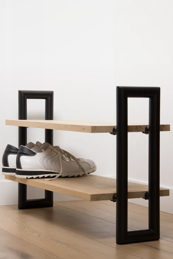 Мебель в стиле лофт часто сочетает металлические каркасы с деревянными поверхностями. Это могут быть столы с массивными металлическими ножками, открытые стеллажи или барные стулья с металлическими деталями. Чёрные или серые металлы в сочетании с тёмным деревом придают мебели строгий и индустриальный вид.
