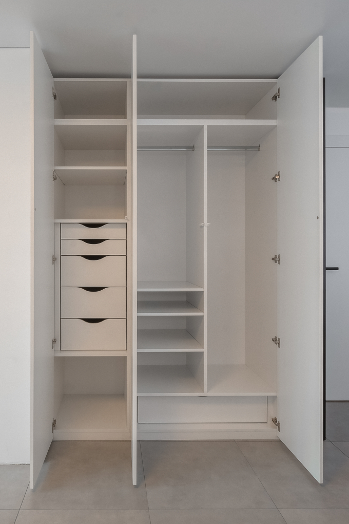 Гардеробный шкаф, состоящий из различных модулей, является универсальным решением для организации хранения одежды и аксессуаров. Используя премиальные материалы, такие как ДСП Egger и МДФ Egger «Perfect Sense» с инновационным покрытием «антиотпечаток», мы изготовили элегантное и прочное изделие, которое прослужит долгие годы. Фурнитура Muller с механизмами PushOpen и направляющими с доводчиком обеспечивает плавное и бесшумное открывание дверей.
