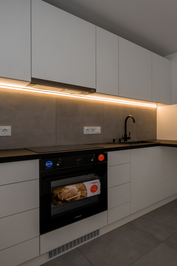 Каждый дом — это уникальное пространство. Мы понимаем, что ваша кухня должна быть не менее уникальной. Именно поэтому мы изготовили компактную угловую кухню, которая полностью соответствует потребностям и вкусам заказчика. Изысканное ДСП Egger премиального сегмента белого цвета придает кухне свежий и современный вид. Столешница HPL Arpa «Fenix» обеспечивает высокую прочность и легкость в уходе. Фурнитура Muller с механизмами PushOpen и направляющими с доводчиком добавляет функциональности и удобства в использовании, делая вашу кухню не только стильной, но и практичной.
