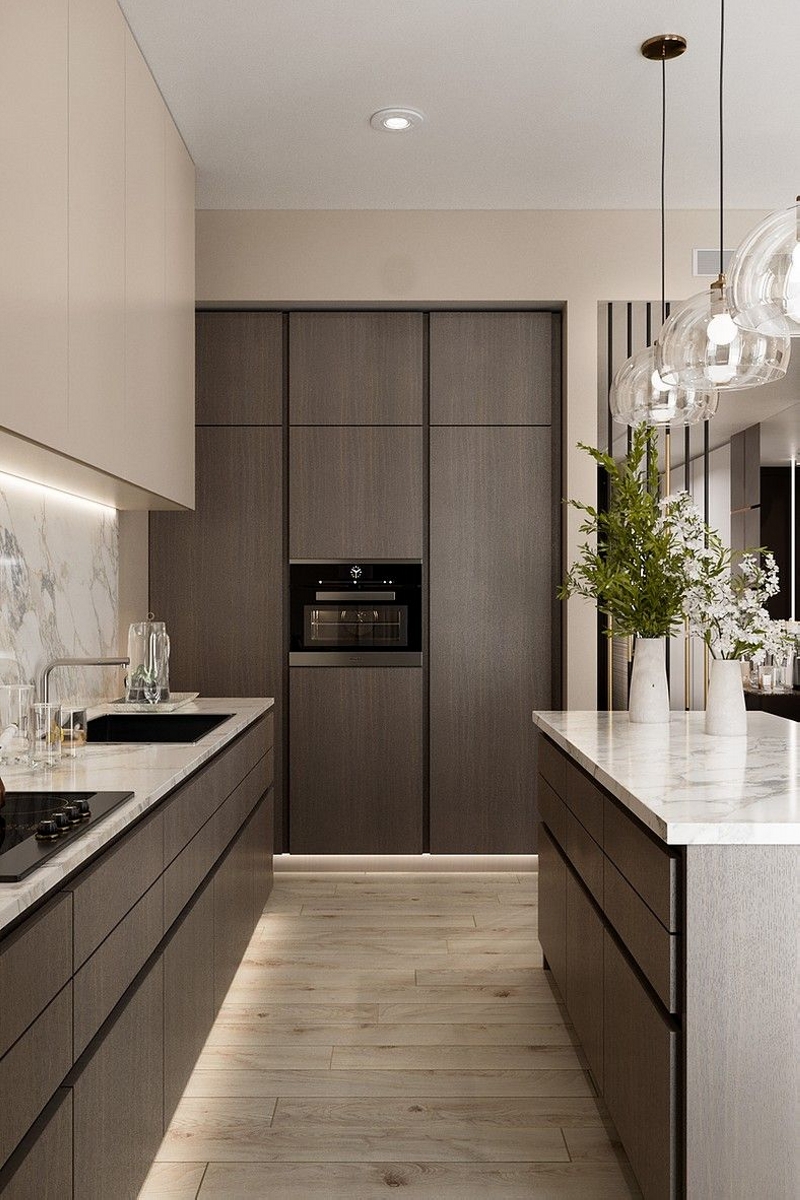 • Чистая эстетика. Минимум стыков и видимой фурнитуры, плавные фасады, аккуратные линии.